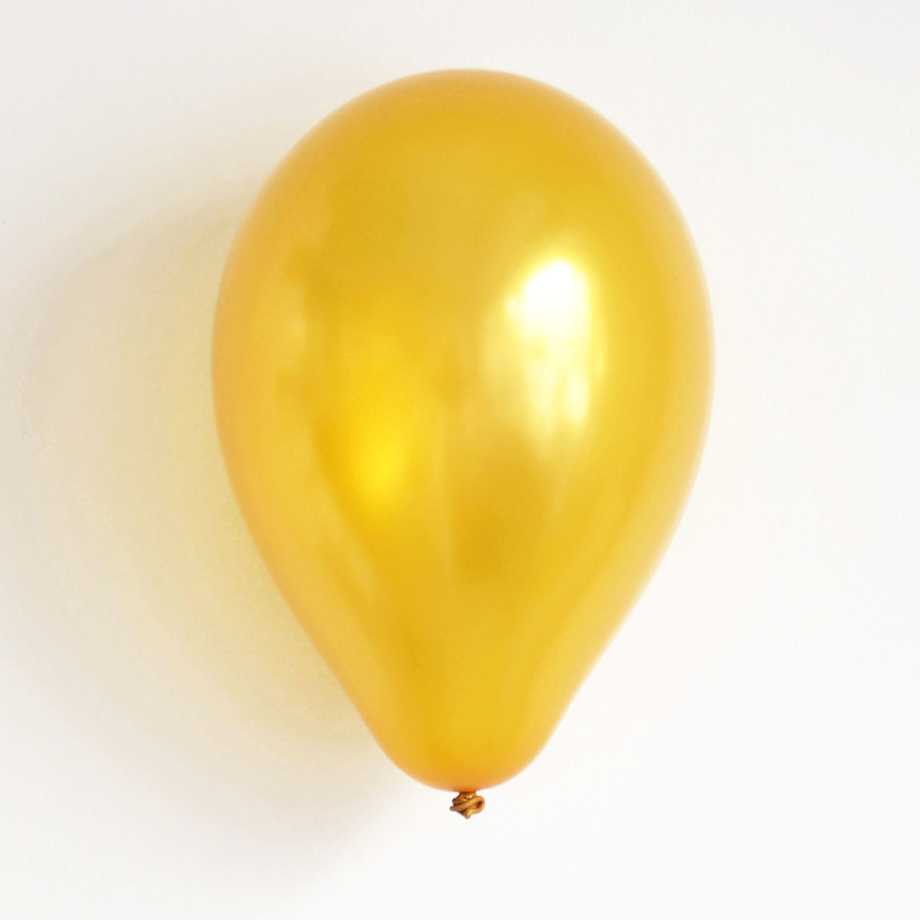 10 kpl metallinhohtoisia, kullan värisiä ilmapalloja. Yhden pallon halkaisija n. 25cm.